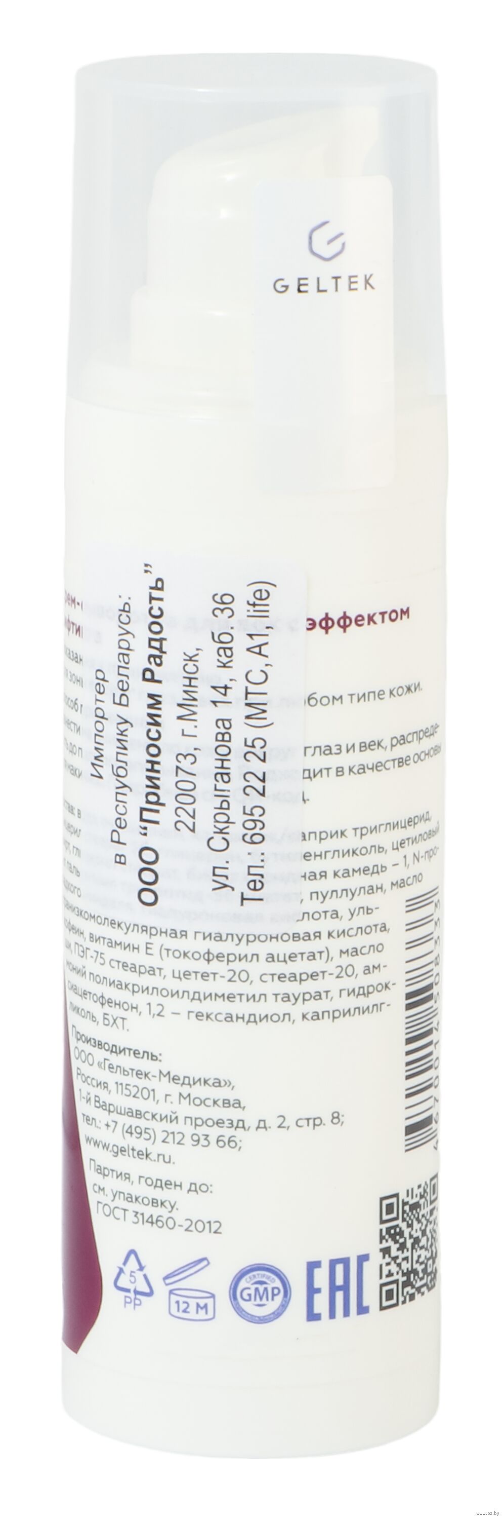 Крем-сыворотку нанести на очищенную кожу вокруг глаз и век, распределить лёгкими массажными движениями до полного впитывания. При необходимости, поверх крема-сыворотки можно нанести солнцезащитное средство. Подходит в качестве основы для макияжаСостав