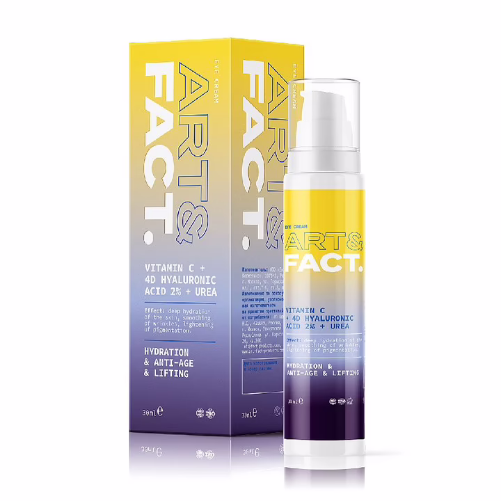 Увлажняющий лифтинг крем для области вокруг глаз с витамином С, 4D гиалуроновой кислотой 2% и мочевиной для разглаживания морщин и уменьшения темных кругов под глазами.