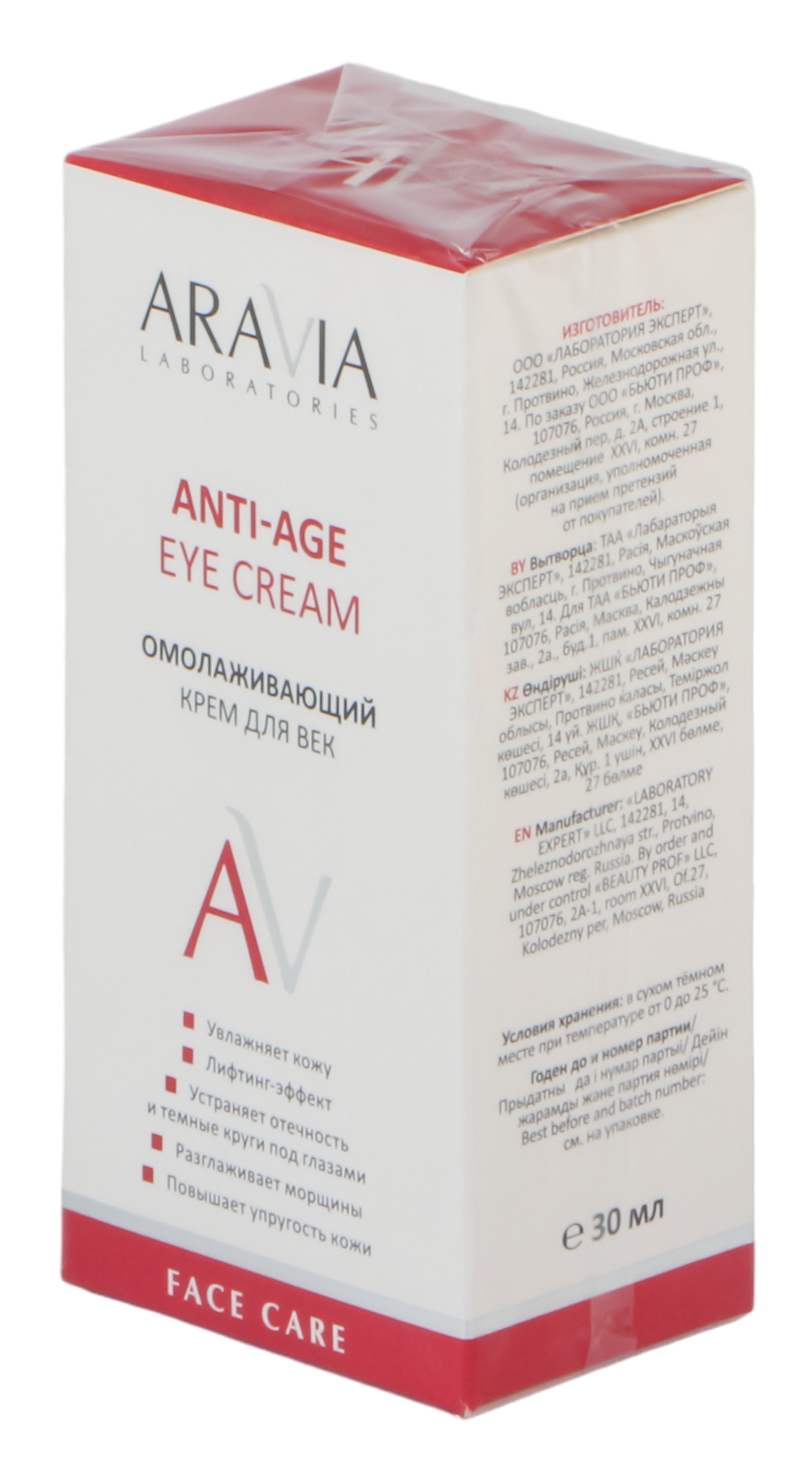 Нанесите небольшое количество крема на периорбитальную область, избегая подвижной части век. Легкими похлопывающими движениями вбейте крем до полного впитывания.Состав
