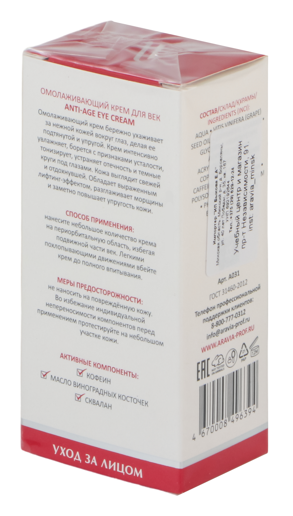 | Импортер | ООО "Учебный центр косметологии Аравия", 220012, г. Минск, Пр-т Независимости, д. 91, пом. 67 |