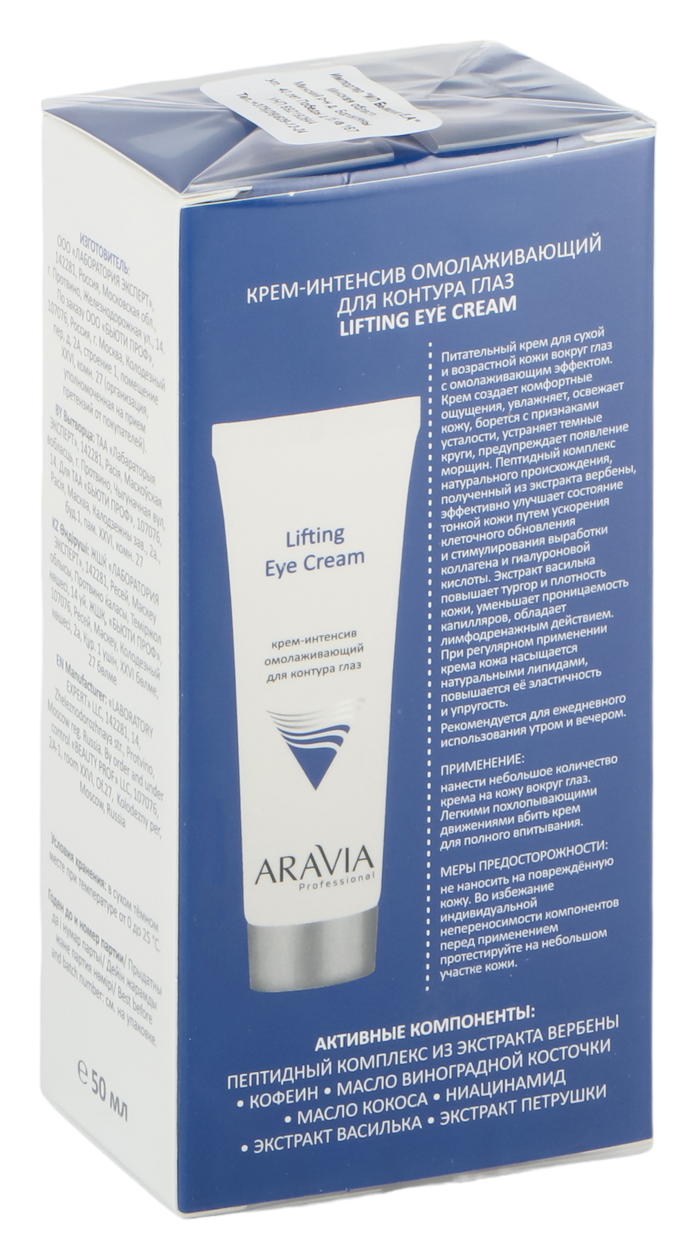 Питательный крем для сухой и возрастной кожи вокруг глаз с омолаживающим эффектом. Крем создает комфортные ощущения, увлажняет, освежает кожу, борется с признаками усталости, устраняет темные круги, предупреждает появление морщин. Пептидный комплекс натурального происхождения, полученный из экстракта вербены, эффективно улучшает состояние тонкой кожи путем ускорения клеточного обновления и стимулирования выработки коллагена и гиалуроновой кислоты. Экстракт василька повышает тургор и плотность кожи, уменьшает проницаемость капилляров, обладает лимфодренажным действием. При регулярном применении крема кожа насыщается натуральными липидами, повышается её эластичность и упругость. Сокращает мимические морщины и предупреждает появление новых.