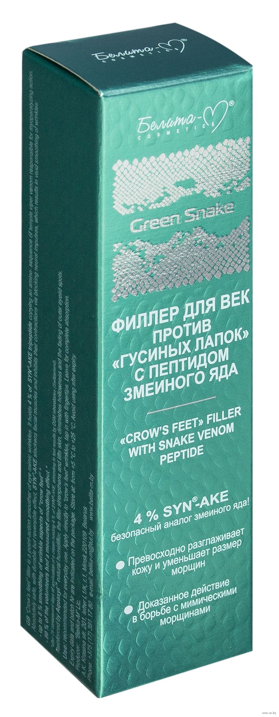Филлер предназначен для ежедневного применения. Нанесите на чистую кожу у внешних уголков глаз (в области "гусиных лапок"), распределяя легкими похлопывающими движениями подушечек пальцев. Дождитесь полного впитывания.Состав