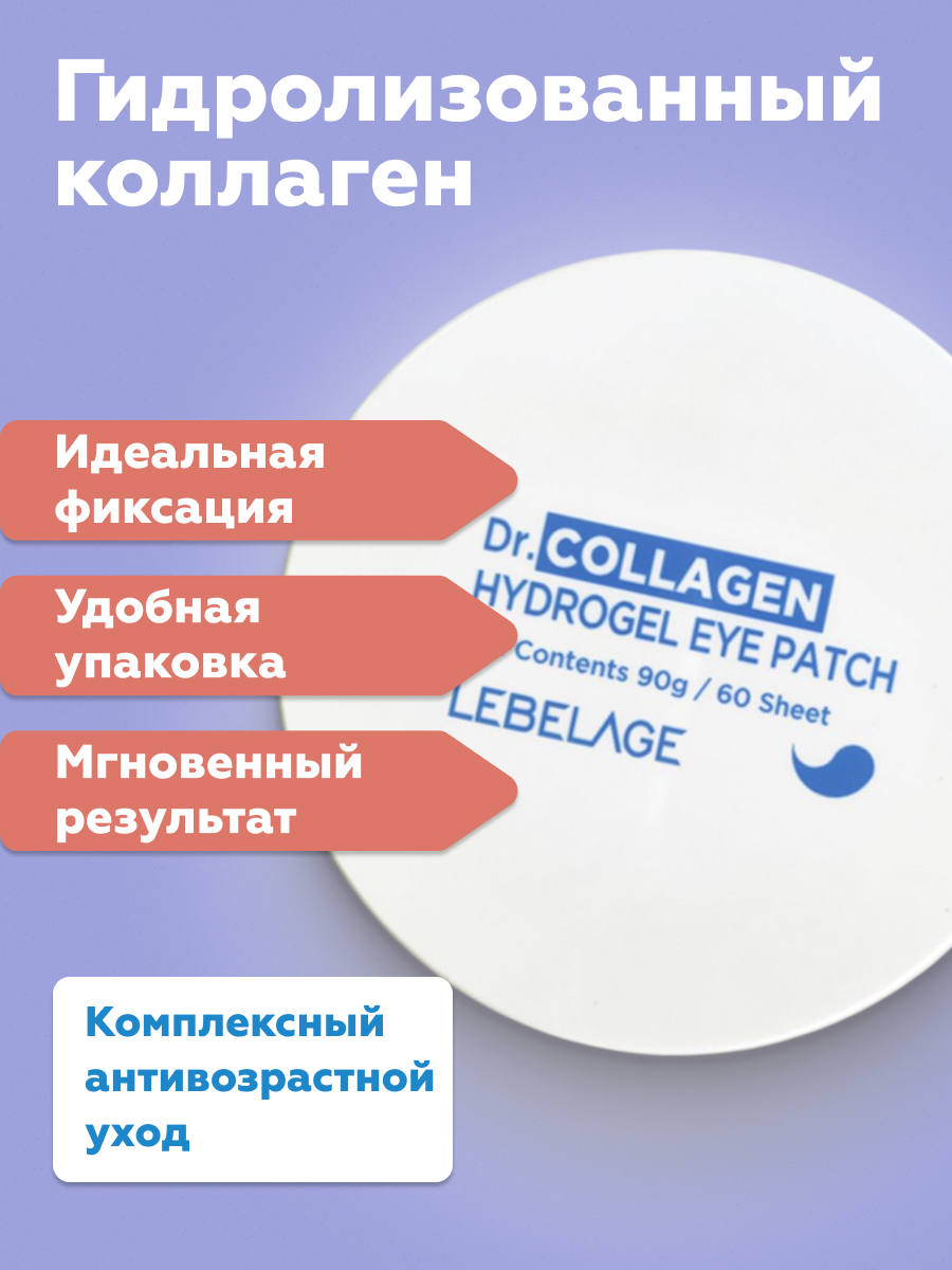 Lebelage Гидрогелевые патчи для глаз с гидролизованным коллагеном – это экспресс-средство для ухода за деликатной кожей вокруг глаз, которое поможет быстро освежить взгляд, уменьшить отечность и темные круги, а также разгладить мелкие морщинки. Коллаген, ключевой ингредиент, способствует повышению упругости и эластичности кожи, стимулирует выработку собственного коллагена, тем самым оказывая мощный антивозрастной эффект.
