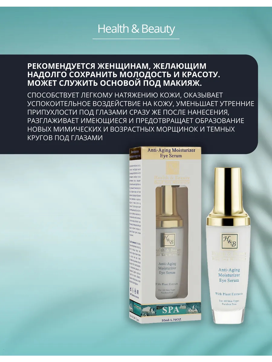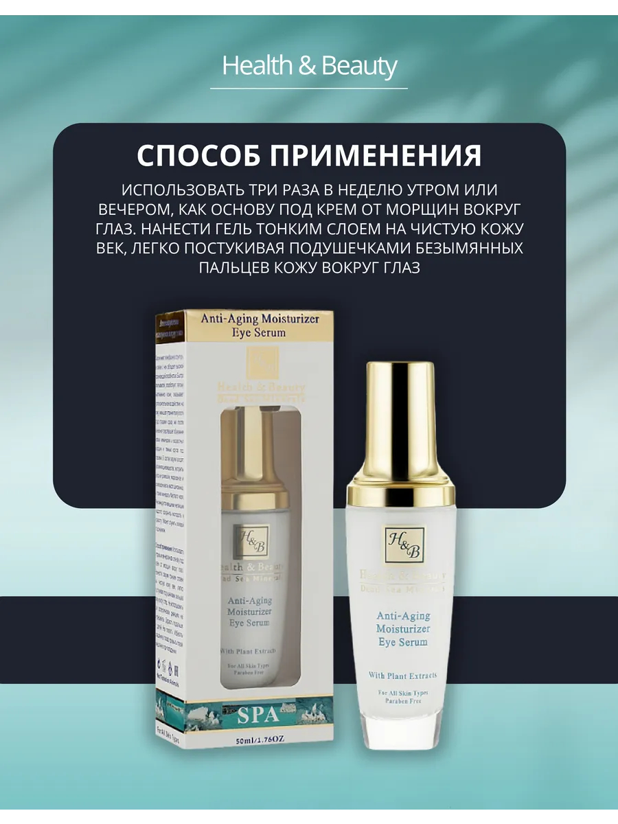 Сыворотка имеет гелеобразную структуру, в связи с чем обладает высокой проникающей способностью. Быстро впитывается, способствует легкому натяжению кожи, оказывает успокоительное воздействие на кожу, уменьшает утренние припухлости под глазами сразу же после нанесения, предотвращает образование новых мимических и возрастных морщин и темных кругов под глазами.
