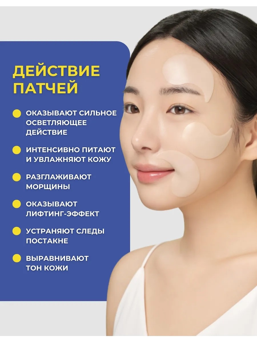 Гидрогелевые патчи эффективно устраняют темные круги под глазами, разглаживают, увлажняют и выравнивают тон кожи. Главный компонент продукта – витамин С, который борется с нежелательной пигментацией, стимулирует выработку коллагена и осветляет. После их применения лицо выглядит отдохнувшим и приобретает здоровое сияние.