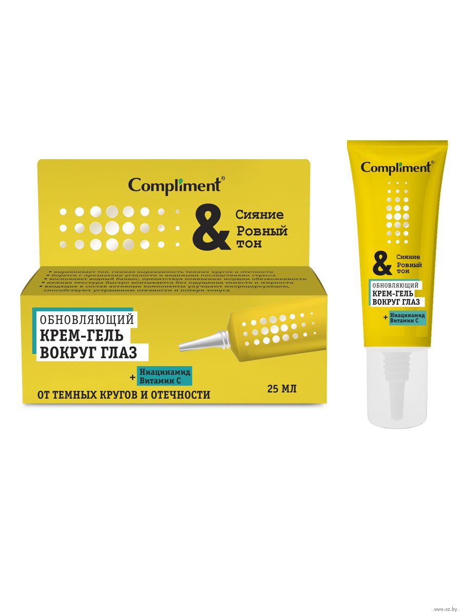 Крем-гель для кожи вокруг глаз "Сияние и ровный тон" от Compliment – это обновляющее средство, которое выравнивает тон кожи, снижает выраженность тёмных кругов и отёчности, а также борется с признаками усталости и последствиями стресса.