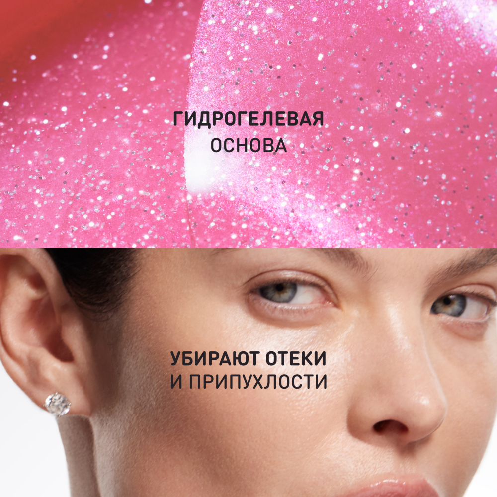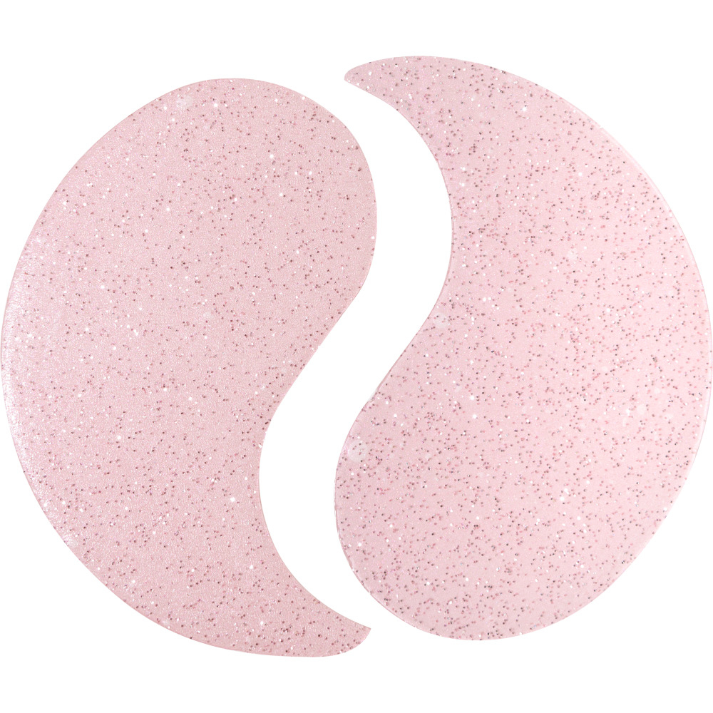 В наборе – 32 полупрозрачных розовых патча с блестками и ложечка для комфортного использования.