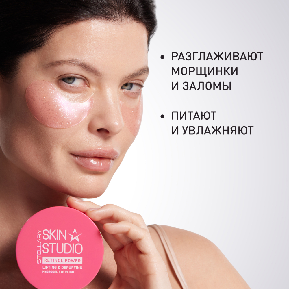 Гидрогелевые патчи "Retinol Lifting & Depuffing Hydrogel Eye Patch" от Stellary Skin Studio против морщин и отеков интенсивно восстанавливают кожу вокруг глаз, питают и увлажняют ее.