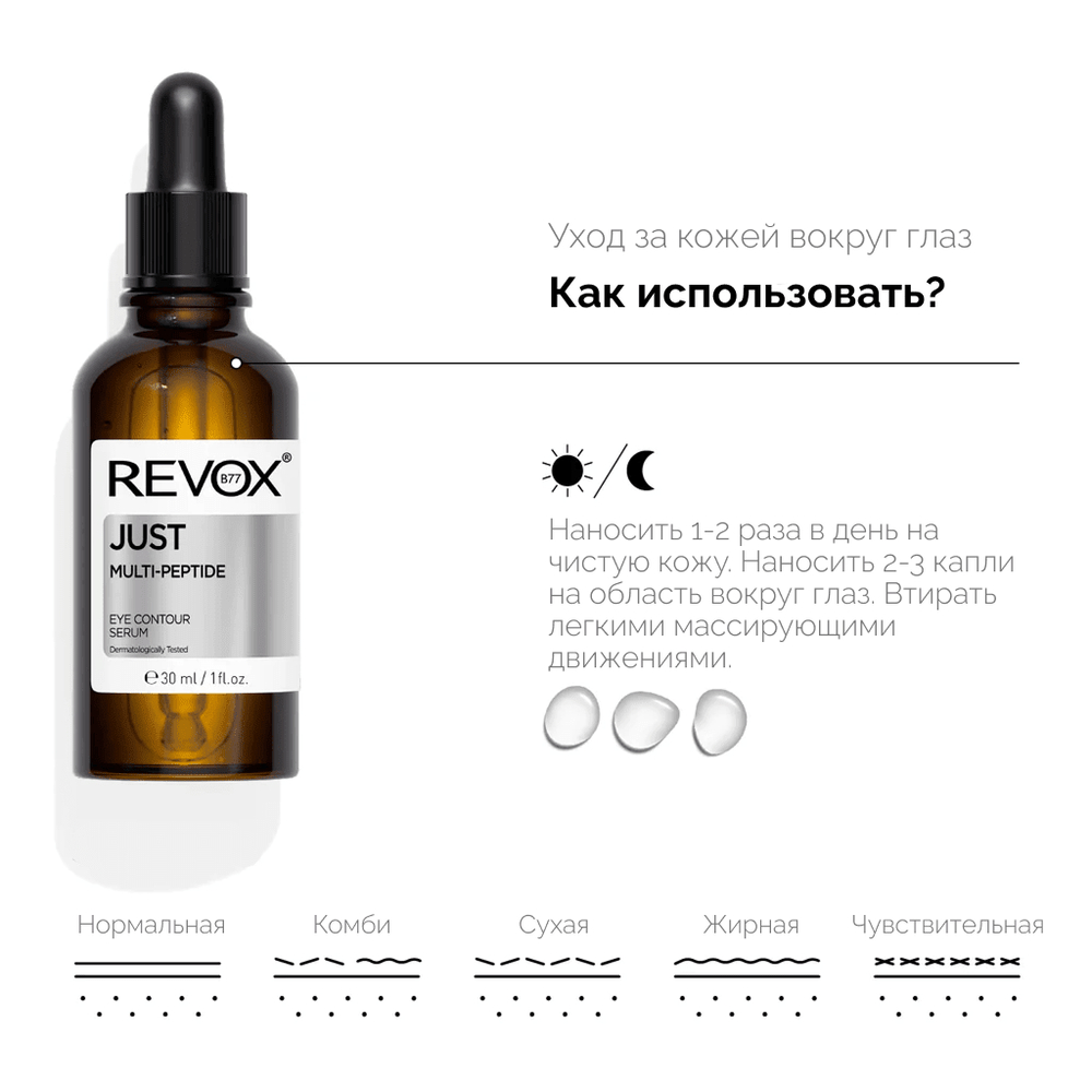 Наносите 3–4 капли на область вокруг глаз утром и/или вечером на чистую и сухую кожу. Аккуратно втирайте до полного впитывания. Затем нанесите следующее средство.Состав