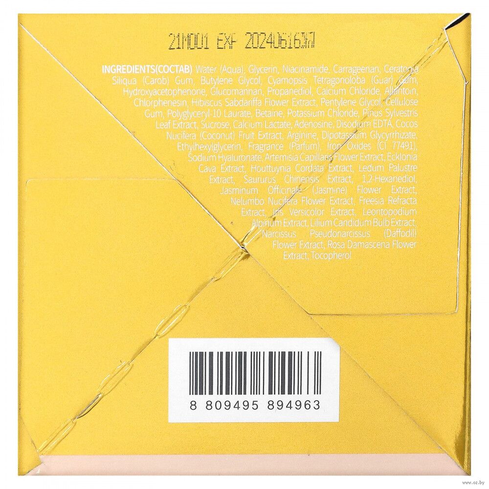 Вода, глицерин, никотинамид, каррагинан, камедь рожкового дерева (Ceratonia siliqua), бутиленгликоль, гуар (Cyamopsis tetragonoloba), гидроксиацетофенон, глюкоманнан, пропандиол, хлорид кальция, аллантоин, хлорфенезина, экстракт цветков розеллы (Hibiscus sabdariffa), пентилен гликоль, целлюлозная камедь, полиглицерил-10 лаурат, бетаин, хлорид калия, экстракт хвои сосны (Pinus sylvestris), сахароза, лактат кальция, аденозин, двунатриевая ЭДТК, экстракт кокоса (Cocos nucifera), аргинин, дикалия глицирризат, этилгексилглицерин, отдушка (парфюмерная композиция), оксиды железа (CI 77491), гиалуронат натрия, экстракт цветков полыни (Artemisia capillaris), экстракт эклонии кавы (Ecklonia cava), экстракт хауттюйнии сердцевидной (Houttuynia cordata), экстракт багульника болотного, экстракт савруруса китайского (Schisandra chinensis), 1,2-гександиол, экстракт цветков жасмина (Jasminum officinale), экстракт цветков лотоса (Nelumbo nucifera), экстракт фрезии (Feesia refracta), экстракт разноцветного дерева, экстракт эдельвейса альпийского (Leontopodium alpinum), экстракт луковицы лилии (Lilium candidum), экстракт цветков нарцисса ложного (Narcissus pseudo-narcissus), экстракт цветков дамасской розы (Rosa damascena), токоферол.