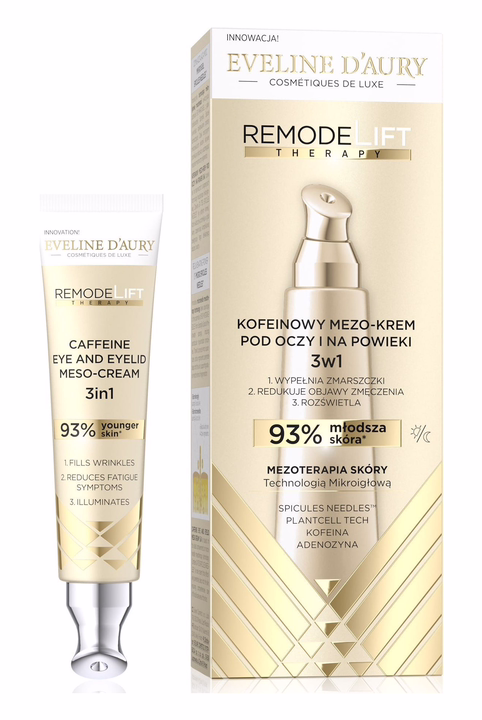Мезо-крем для кожи вокруг глаз с кофеином Eveline D'Aury RemodeLift Therapy 3 в 1 – инновационный препарат, созданный для требовательной кожи вокруг глаз.