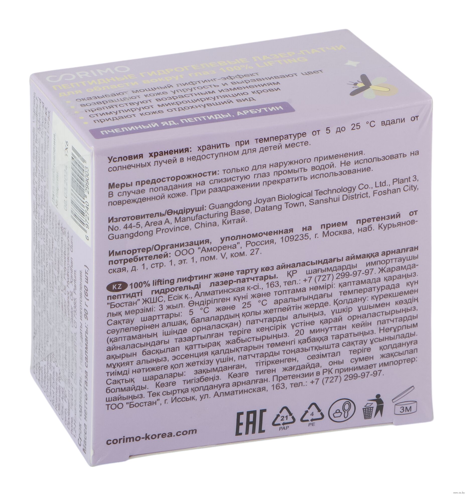 Пептидные гидрогелевые лазер-патчи для области вокруг глаз препятствуют возрастным изменениям, стимулируют микроциркуляцию крови и придают коже отдохнувший вид.