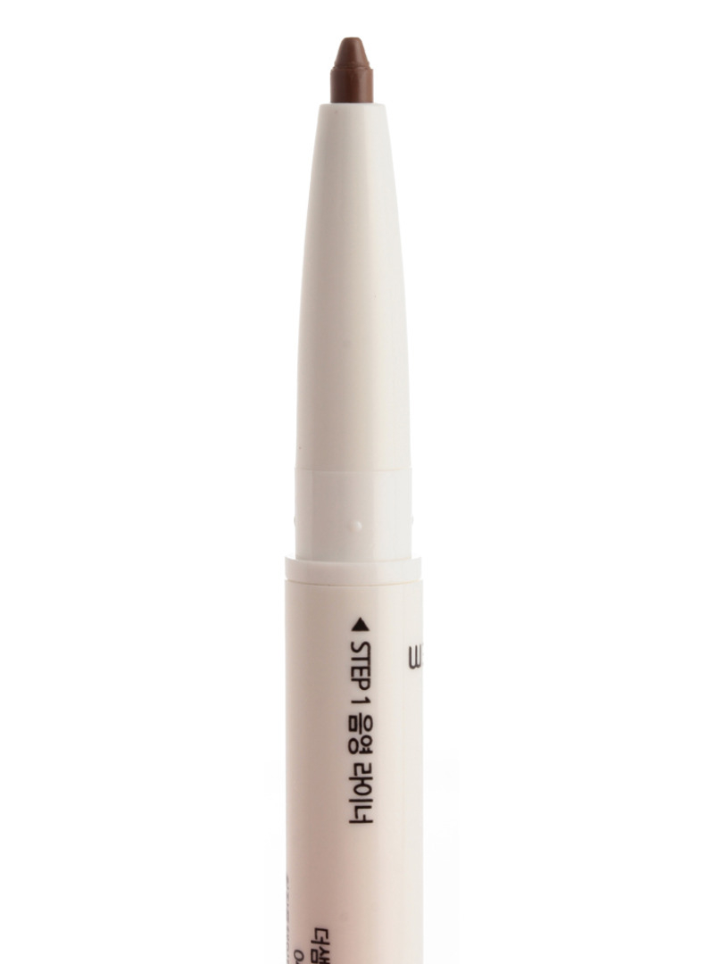 Карандаш для глаз The Saem Saemmul – это средство двойной подводки. Структура карандаша такова, что очень легко рисовать идеально ровные линии. Перламутровый порошок, который расположен на обратном конце, наносится выше основной линии на внешнем уголке. Это способствует появлению эффекта удлинённых ресниц. Блеск можно использовать и вдоль нижнего века, что визуально увеличит разрез глаз.