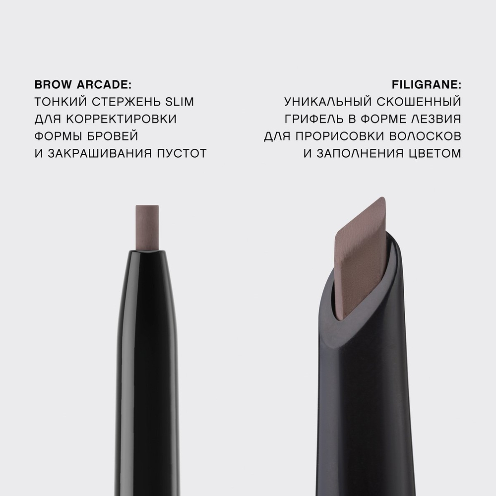 Карандаш в четырех оттенках для всех цветотипов позволяет филигранно прорисовывать каждый волосок, делает брови густыми, объемными и невероятно естественными.