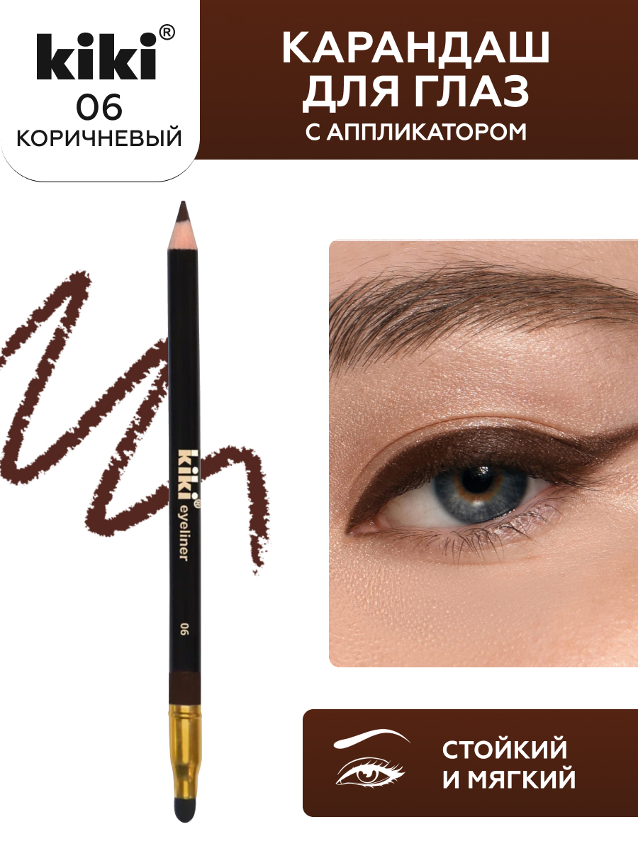 Создайте идеальный образ с помощью карандаша для глаз Kiki Eyeliner! Стойкий карандаш подходит как для работы с веком, так и для проработки межреснички и слизистой в качестве кайала.