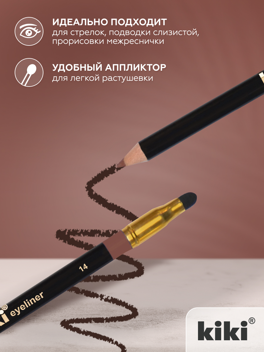 Создайте идеальный образ с помощью карандаша для глаз Kiki Eyeliner! Стойкий карандаш подходит как для работы с веком, так и для проработки межреснички и слизистой в качестве кайала.