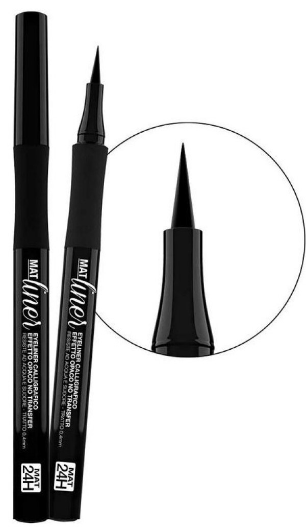 Mat Liner с глубоким черным цветом идеально подходит для водостойких "кошачьих глаз", чтобы оставаться на глазах до самого вечера!