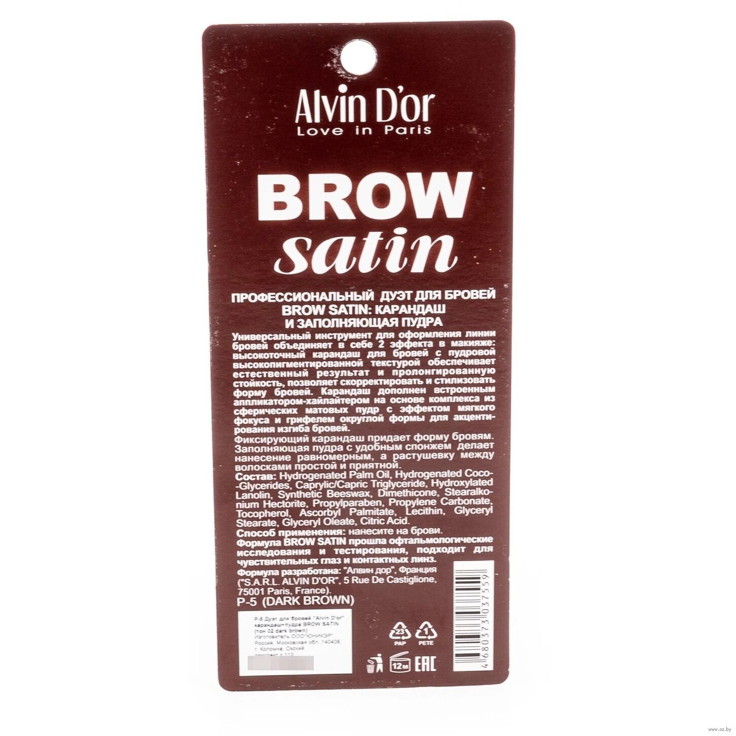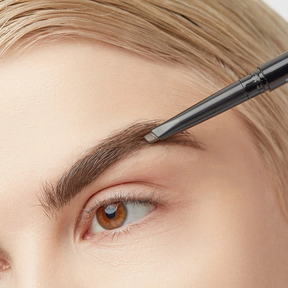 Придание формы карандашом с помощью чётких коротких штрихов. Равномерное прокрашивание и заполнение пространства между волосками с помощью пудры с мягким спонжем.Состав