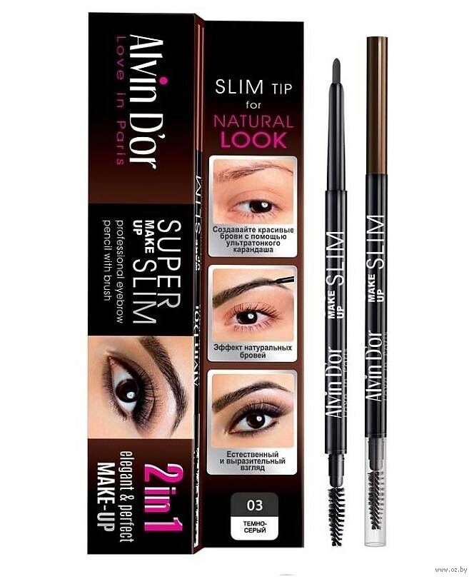 Нанесите карандаш на брови, растушуйте полученный результат с помощью щеточки.Состав