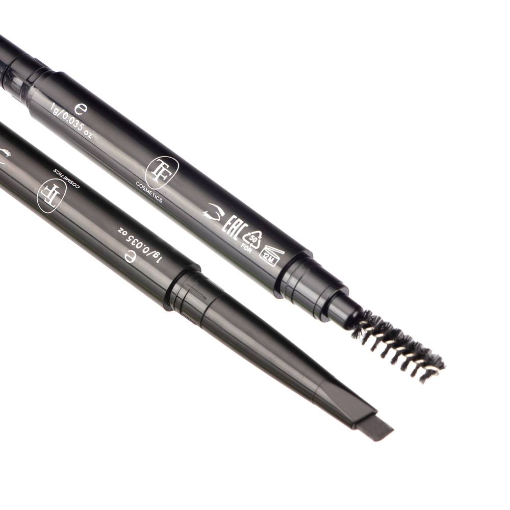 Треугольная форма грифеля позволяет с особым комфортом окрашивать начало брови, варьировать насыщенность цвета, окрашивая кончик темнее, а начало чуть светлее.