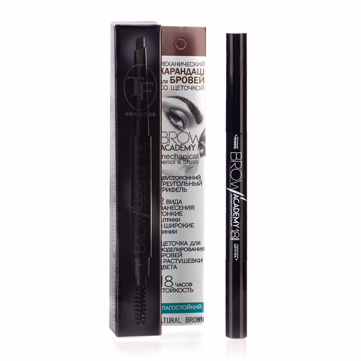 Треугольная форма грифеля позволяет с особым комфортом окрашивать начало брови, варьировать насыщенность цвета, окрашивая кончик темнее, а начало чуть светлее.
