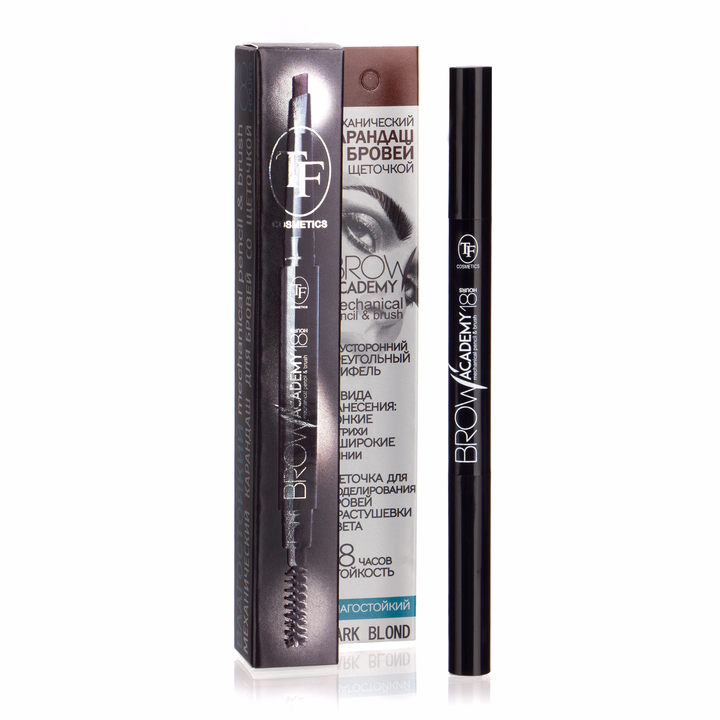 Треугольная форма грифеля позволяет с особым комфортом окрашивать начало брови, варьировать насыщенность цвета, окрашивая кончик темнее, а начало чуть светлее.