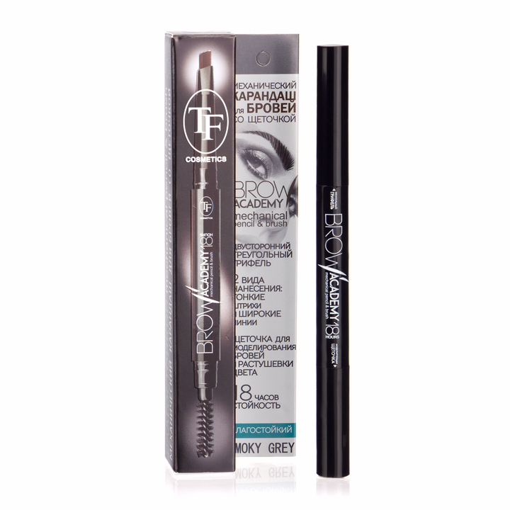 Треугольная форма грифеля позволяет с особым комфортом окрашивать начало брови, варьировать насыщенность цвета, окрашивая кончик темнее, а начало чуть светлее.