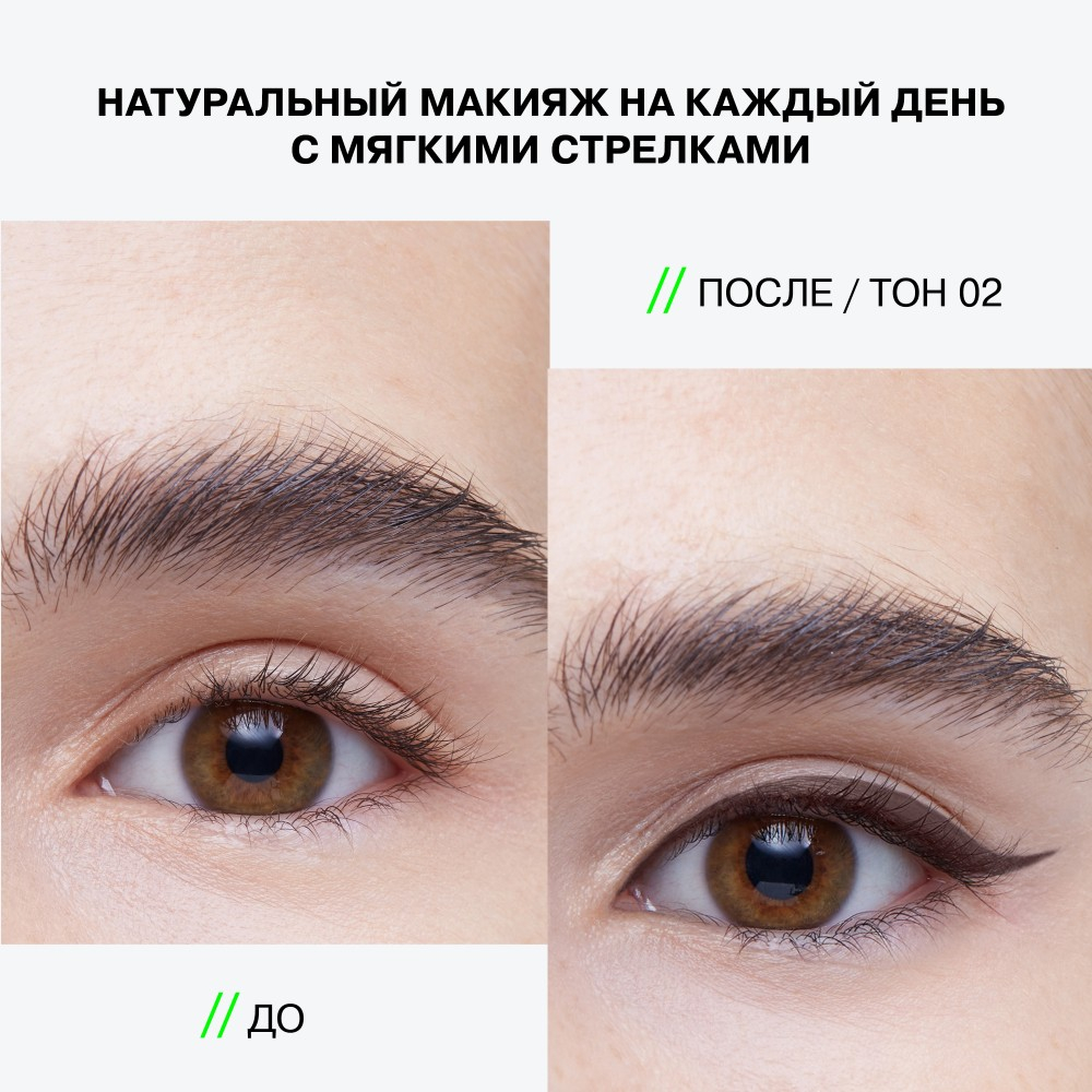 Встряхните подводку перед использованием и наносите с помощью аппликатора тонкой линией у основания ресниц. Лайнером в черном оттенке выводите насыщенные графичные стрелки, а подводкой в коричневом цвете рисуйте мягкие линии с натуральным эффектом на каждый день, а также создавайте веснушки на лице, делая образ уникальным и неповторимым.Состав