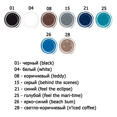 Я очень довольна покупкой! Карандаш легко наносится, не травмируя внутреннее веко (цвет однородный и интенсивный), делает глаза больше и выразительней. Стойкость удовлетворительная.