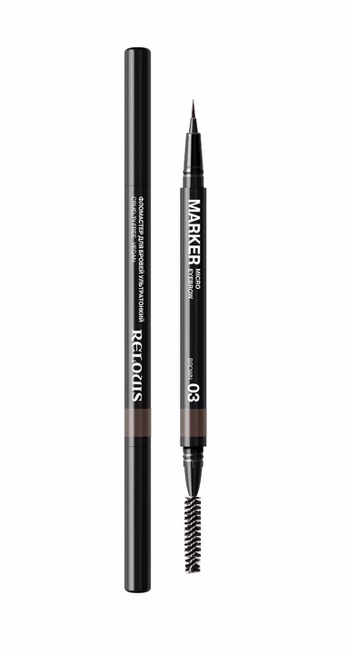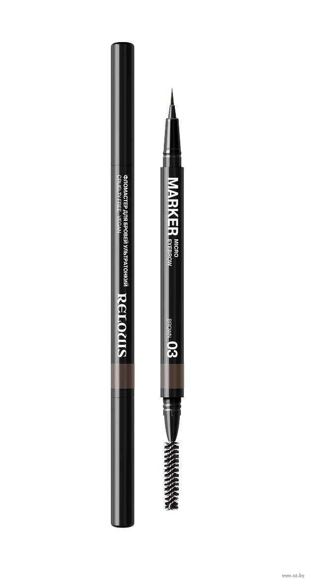 Аппликатор-кисточка диаметром 0,01 мм создаёт натуральную линию, имитируя волоски. Фломастер рисует тонкие штрихи, создавая эффект густых естественных бровей.