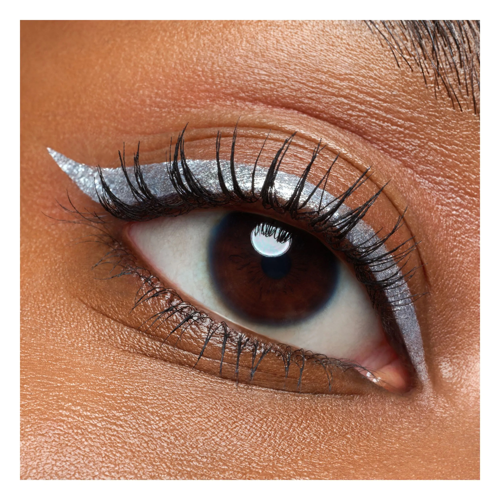 Подводка для глаз обладает завораживающим металлическим серебряным оттенком и формулой, которая продержится весь день. Благодаря точному аппликатору-кисти можно нанести средство без смазывания всего одним движением.