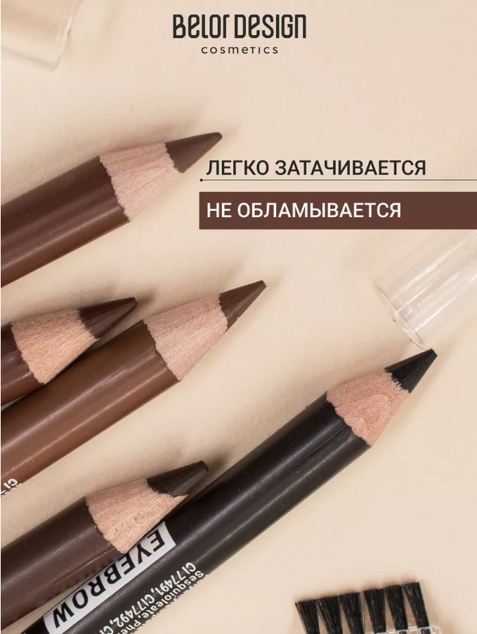 Карандаш наносить легкими, штрихующими движениями по линии роста волос бровей.Состав