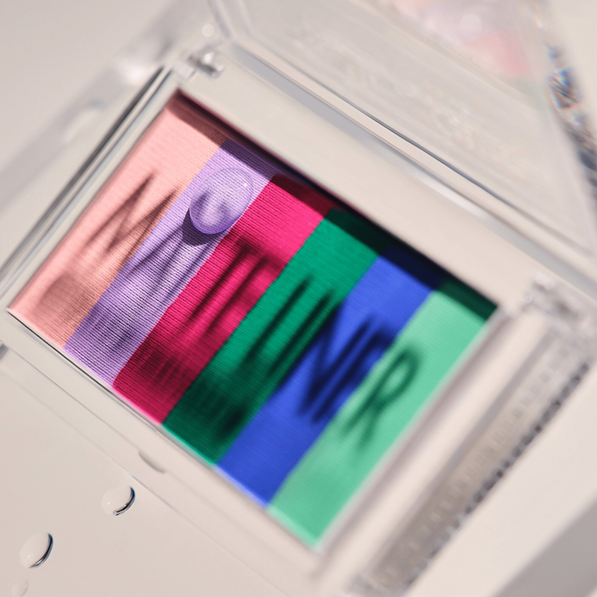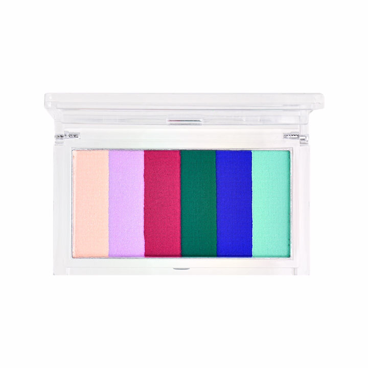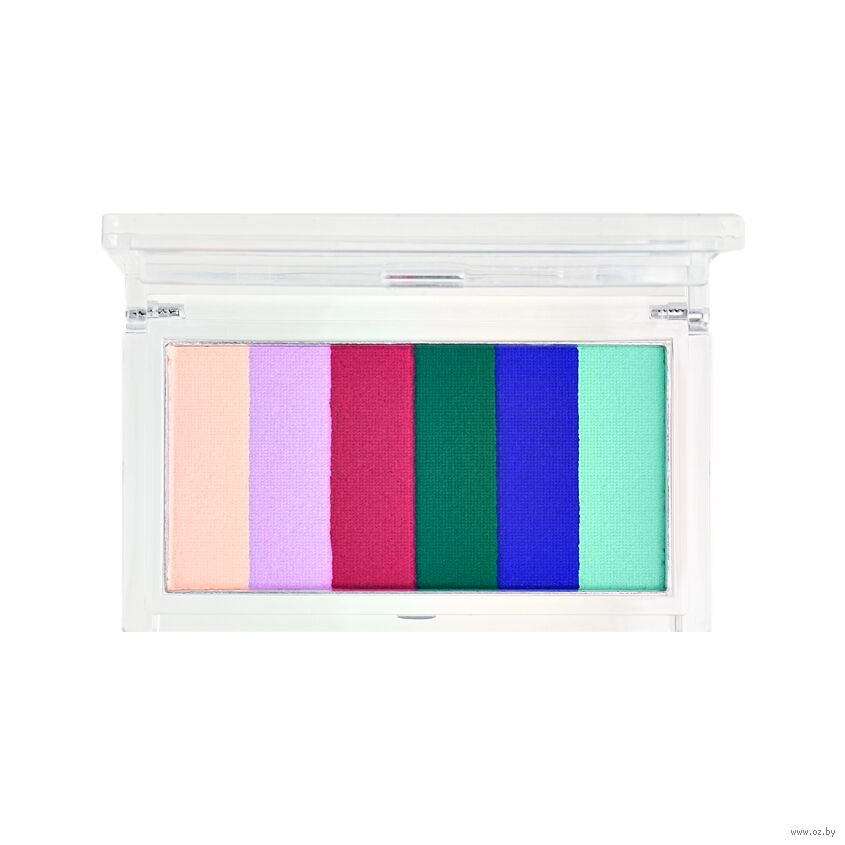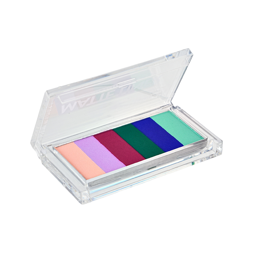 В этой палетке представлены шесть ярких активируемых водой оттенков с матовым финишем: нюдовый розовый, нежно-сиреневый, яркий пурпурный, насыщенный зеленый, ультрамарин и пастельный мятно-голубой.
