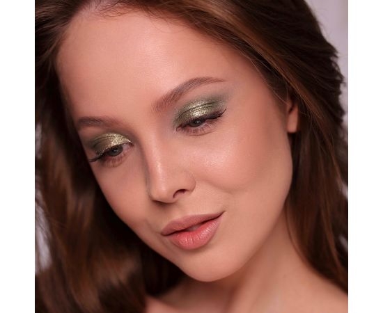 Можно наслаивать тени для получения более интенсивного макияжа глаз. Оптические наполнители и полимеры визуально выравнивают кожу век, уменьшают видимость морщин.