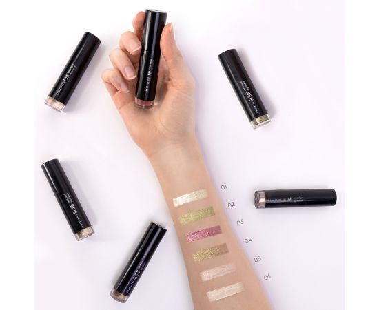 Можно наслаивать тени для получения более интенсивного макияжа глаз. Оптические наполнители и полимеры визуально выравнивают кожу век, уменьшают видимость морщин.