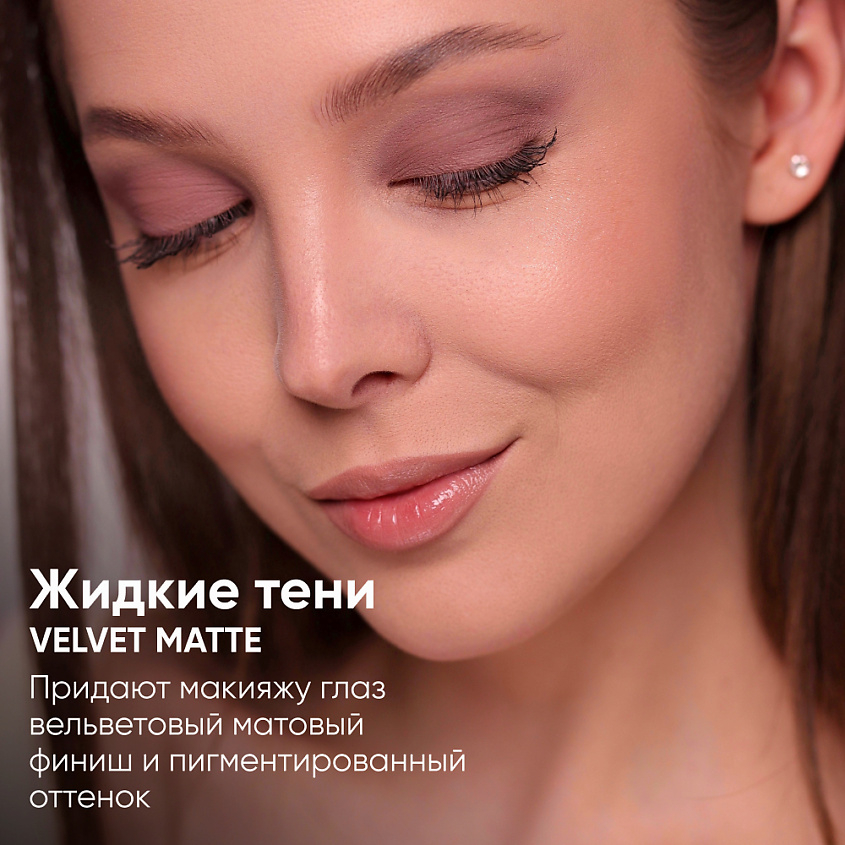 Тени "Velvet Matte Liquid Eye Shadow" придают макияжу глаз вельветовый матовый финиш и пигментированный оттенок, который подчеркивает выразительность глаз в течение дня.
