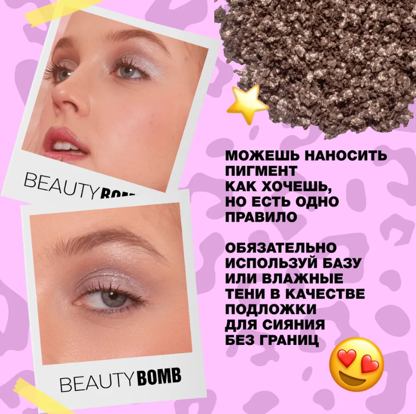 Ты будешь сиять ярче всех! "Посади" пигмент для век на клей или влажные тени, и он останется с тобой на весь вечер. У него рассыпчатая сияющая текстура, с которой макияж получится особенно насыщенным.
