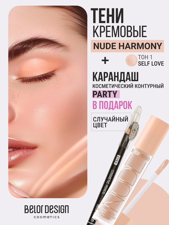 Тени для век "Nude Harmony" тон: 4 + Карандаш косметический контурный "Party"