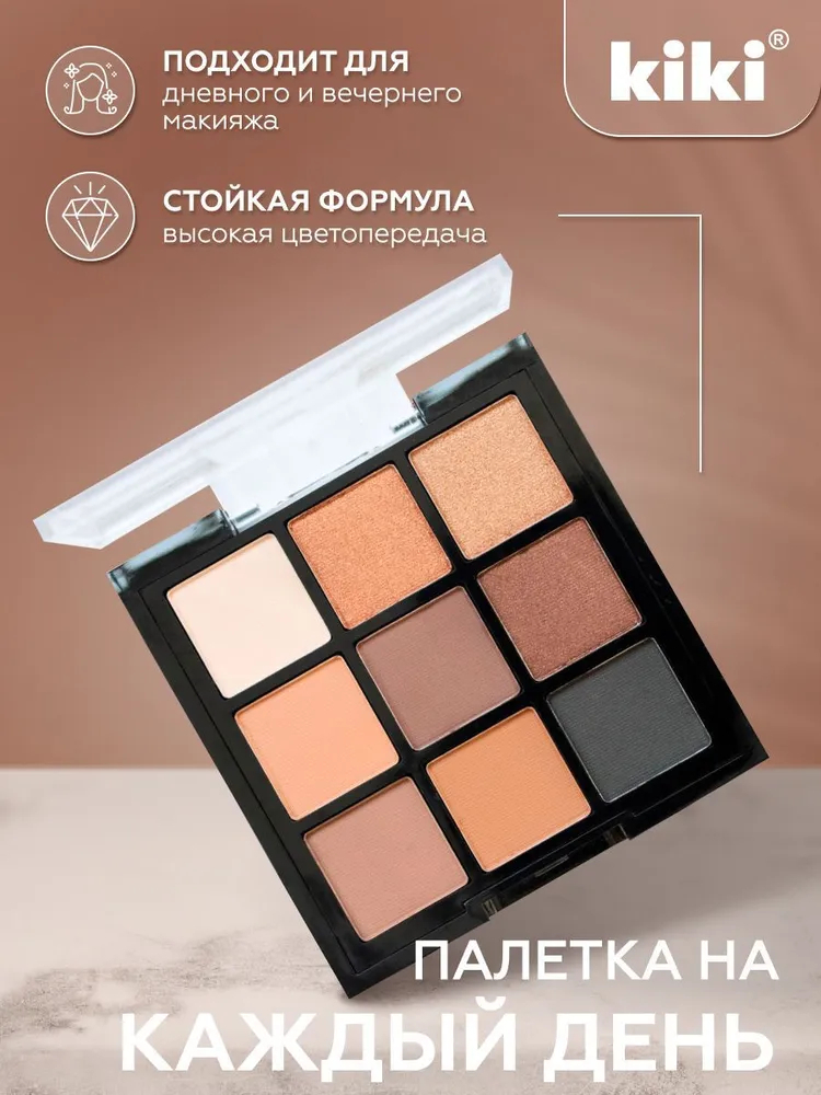Универсальная палетка теней для век, состоящая из 9 оттенков с различными эффектами имеет мягкую, бархатистую текстуру.
