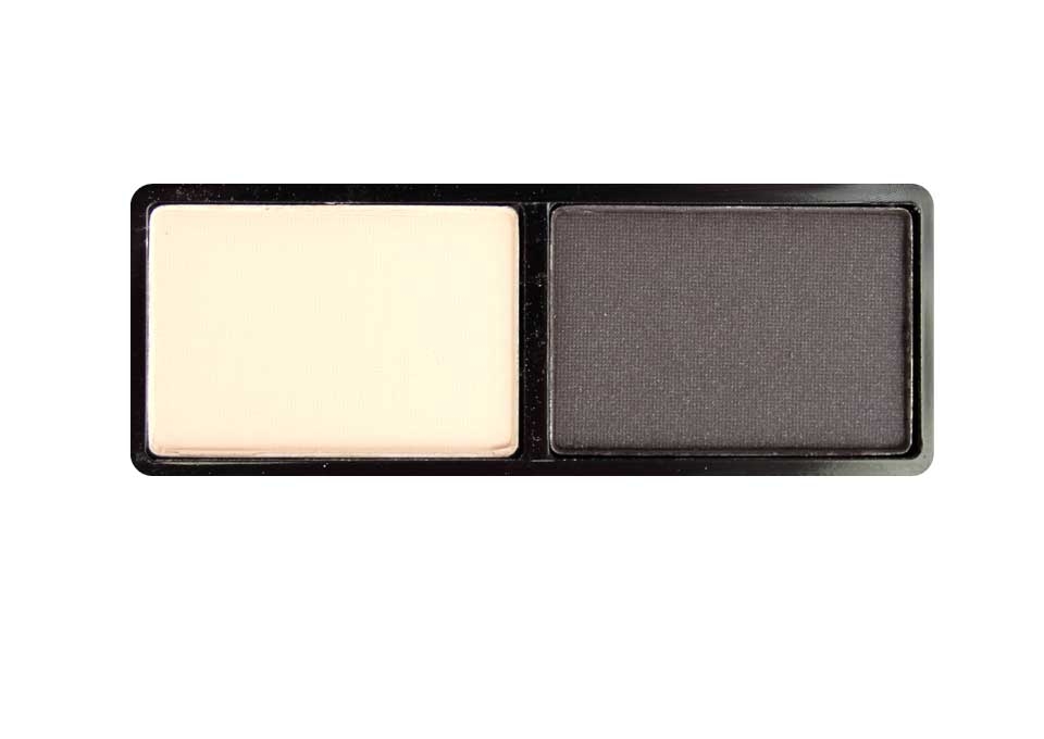 Двухцветные тени с пудровой и шиммерной текстурой.