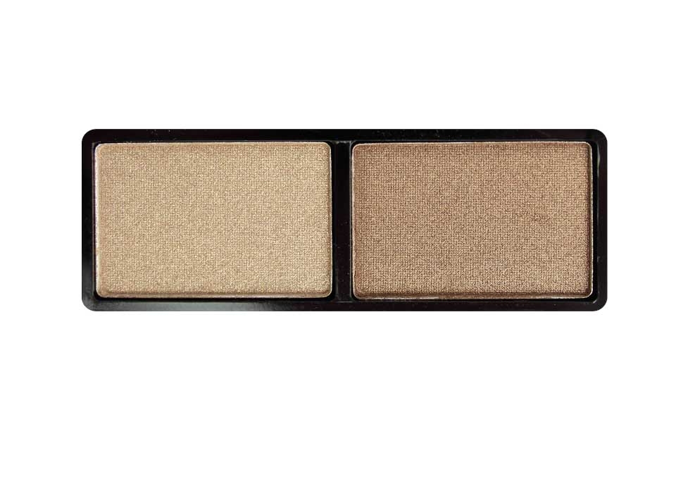 Двухцветные тени с пудровой и шиммерной текстурой.