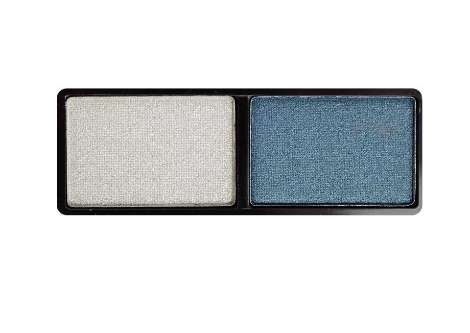 Двухцветные тени с пудровой и шиммерной текстурой.
