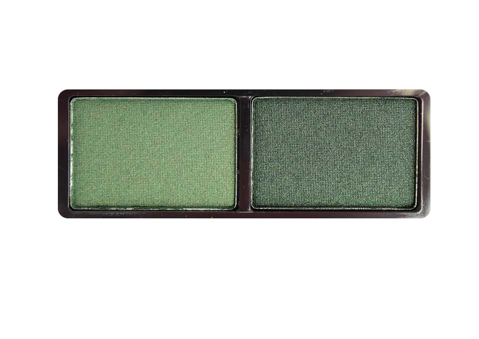 Двухцветные тени с пудровой и шиммерной текстурой.