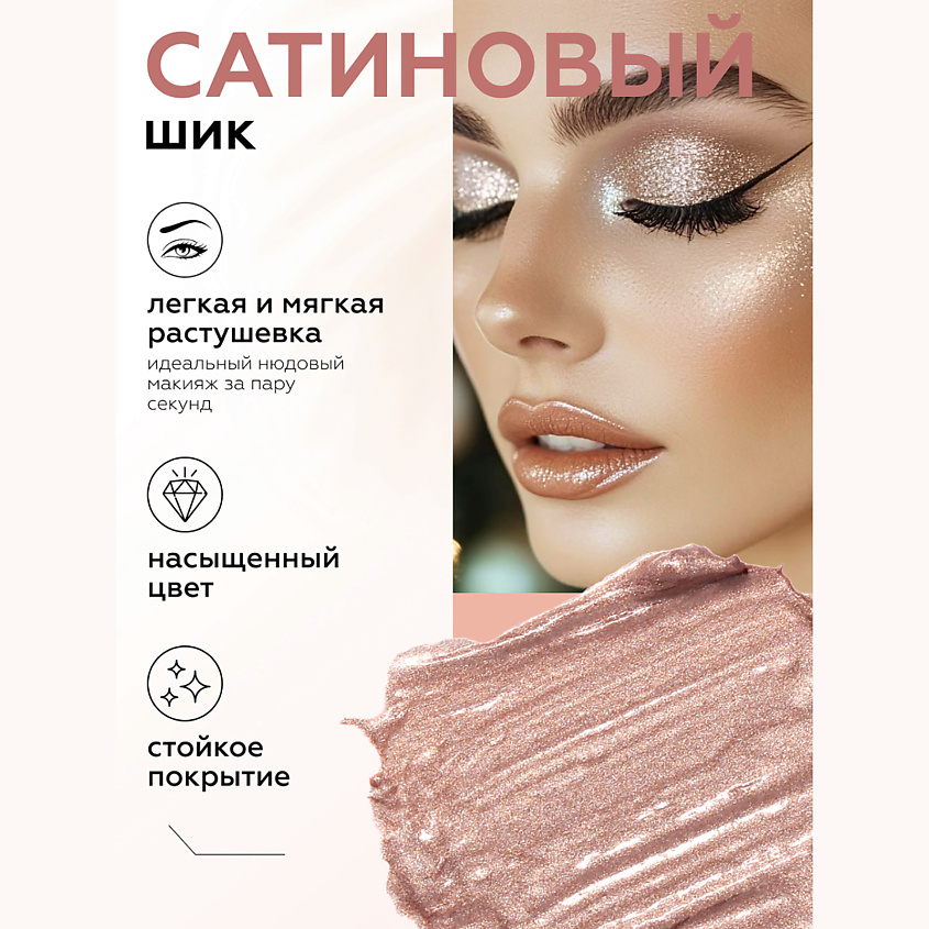 Нанесите небольшое количество продукта на веки, растушуйте контуры теней подушечками пальцев или кисточкой с плотным ворсом лёгкими, похлопывающими движениями.Состав