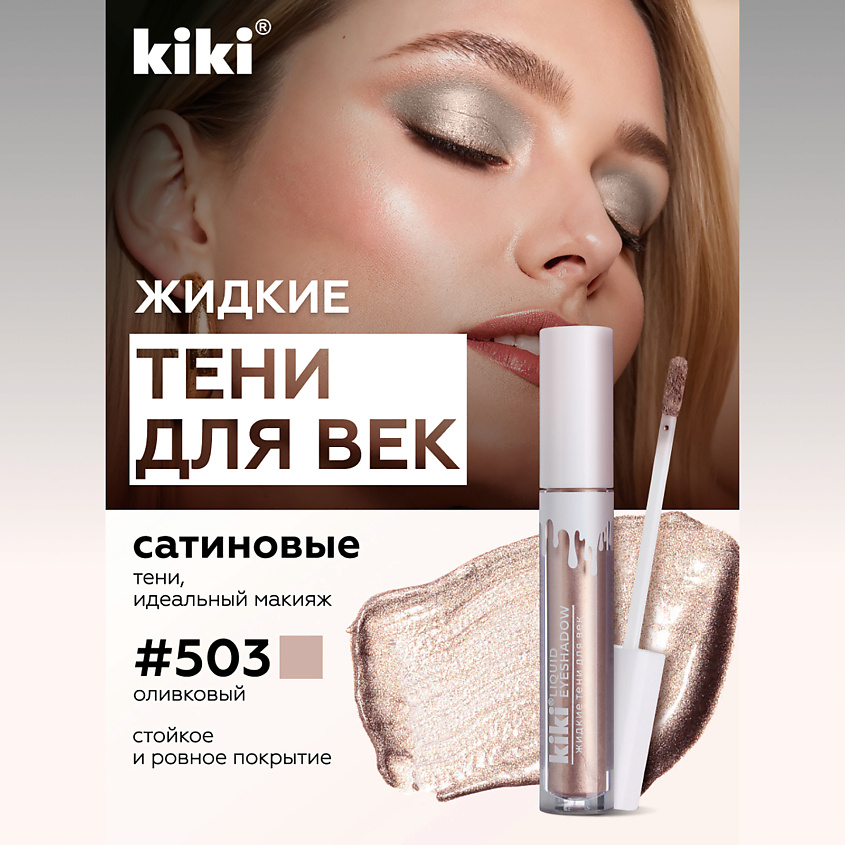 Жидкие тени для век KIKI "Liquid Eyeshadow" имеют мягкую текстуру и удобный бархатный аппликатор, который позволяет легко, равномерно наносить и растушёвывать тени.