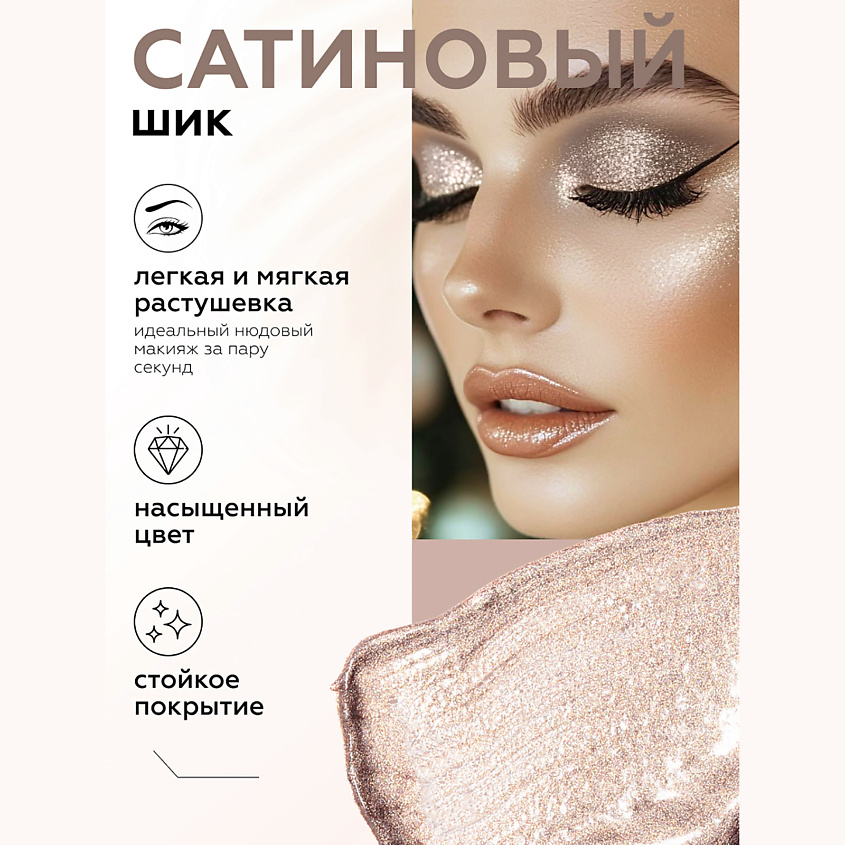 Нанесите небольшое количество продукта на веки, растушуйте контуры теней подушечками пальцев или кисточкой с плотным ворсом лёгкими, похлопывающими движениями.Состав