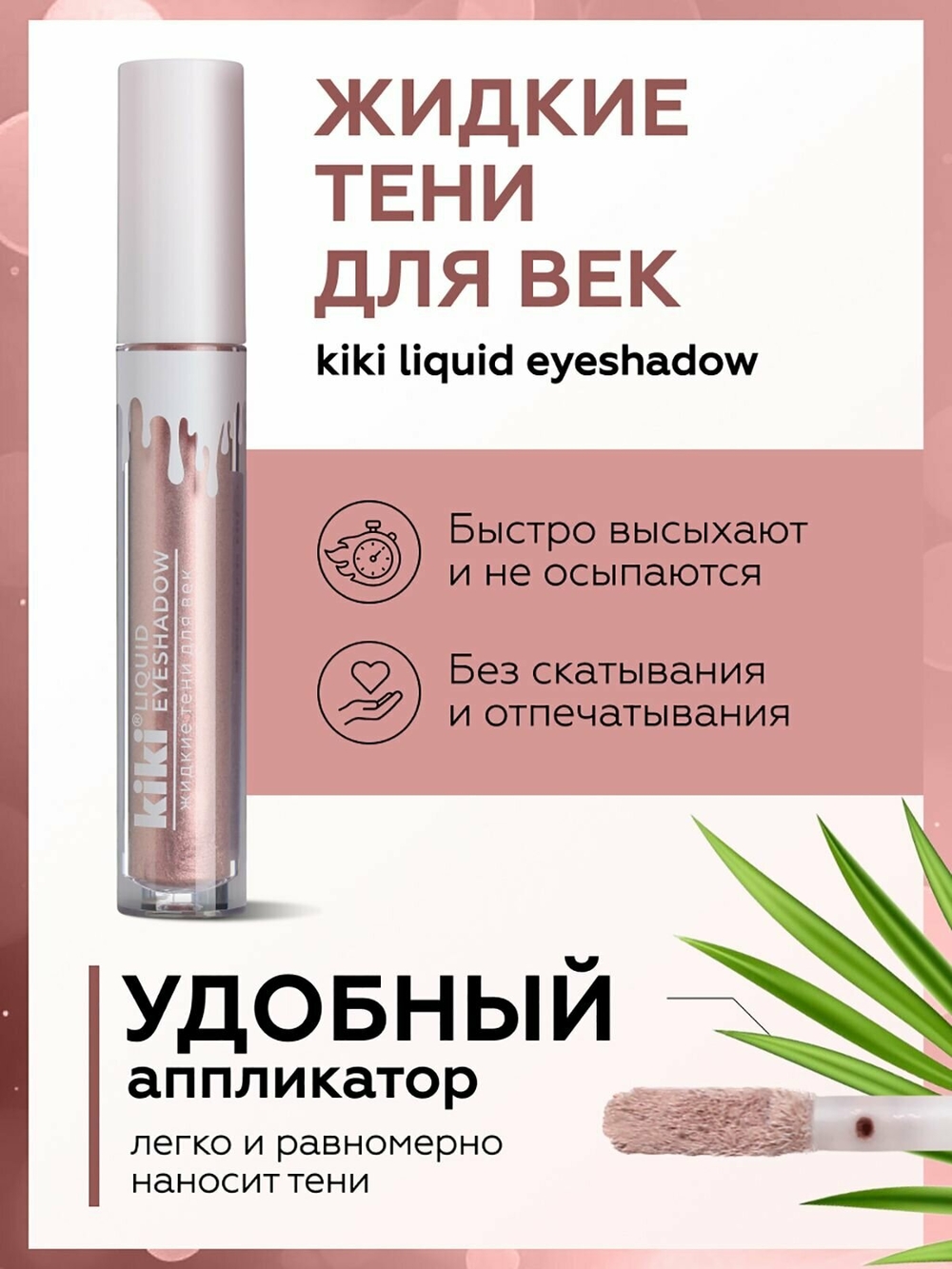 Жидкие тени для век KIKI "Liquid Eyeshadow" имеют мягкую текстуру и удобный бархатный аппликатор, который позволяет легко, равномерно наносить и растушёвывать тени.