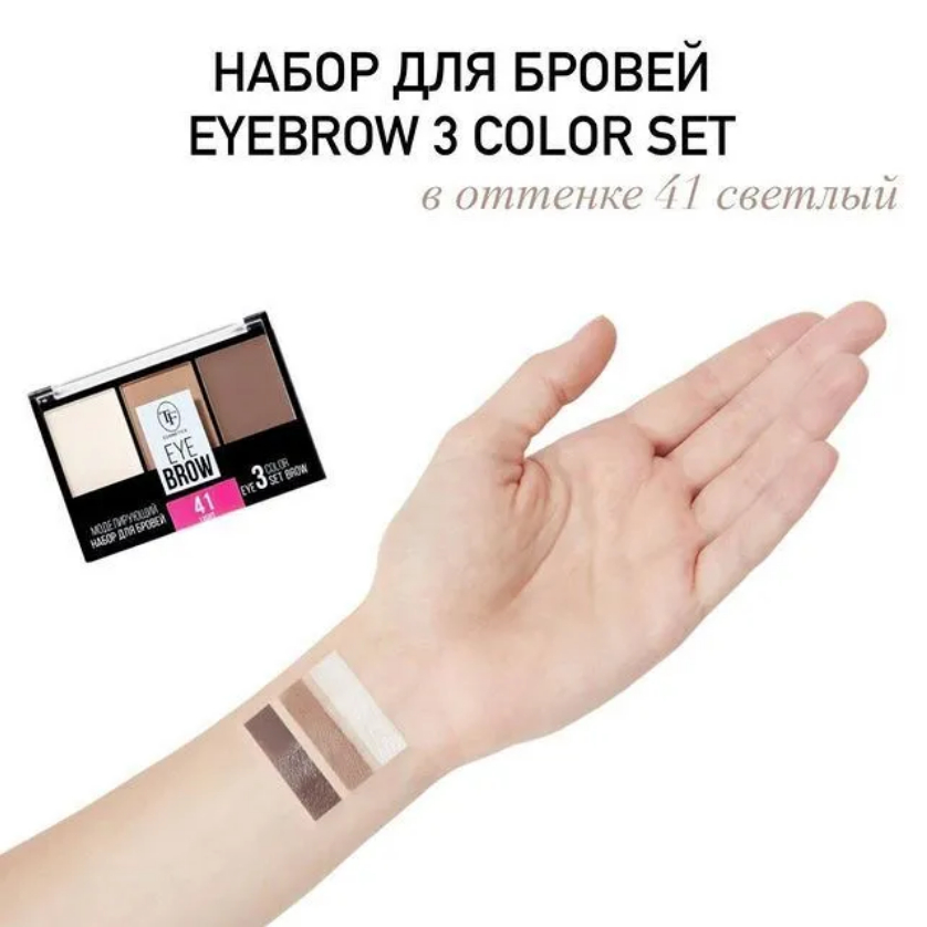 Универсальный набор для оформления ярких и выразительных бровей имеет в комплекте сразу несколько средств: тени с разными текстурами и хайлайтер.