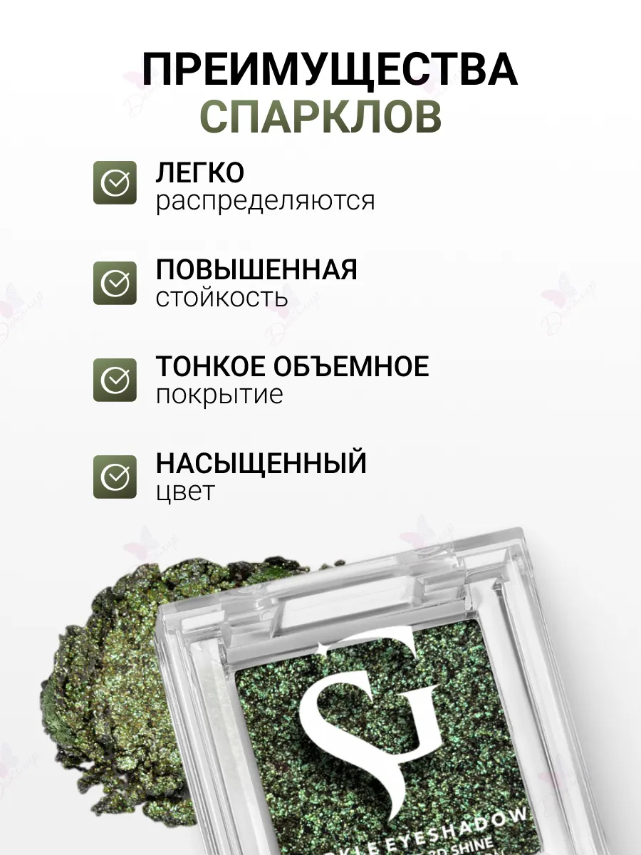Палитра из 10-ти спарклов прекрасно дополняет вечерний и праздничный образ, но есть и более нейтральные варианты для сдержанного дневного макияжа.