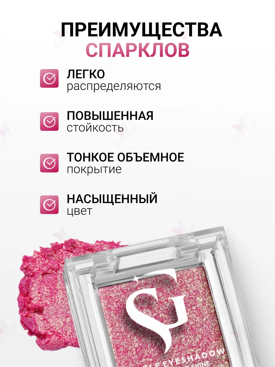 На подвижное веко при помощи подушечки пальца легкими втирающими движениями нанесите спаркл. Для максимальной стойкости наносите тени на праймер.Состав